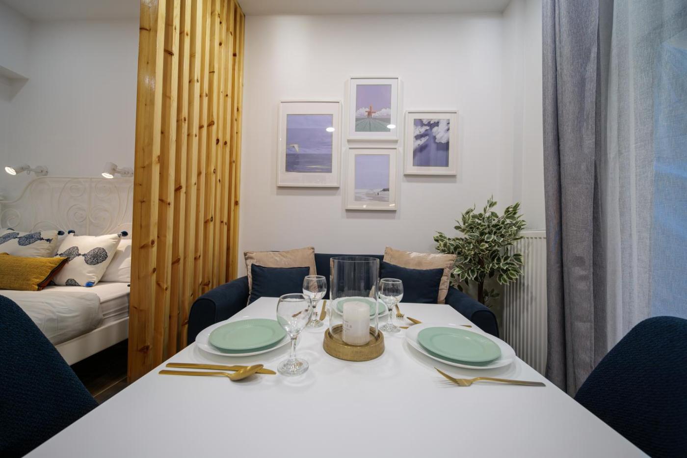 One-Bedroom Apartment. The fully equipped kitchen has a stovetop, a refrigerator, a dishwasher and kitchenware. This apartment is air-conditioned and features a seating area with a flat-screen TV, soundproof walls, a tea and coffee maker, a dining area, as well as a wardrobe. The unit offers 1 bed.